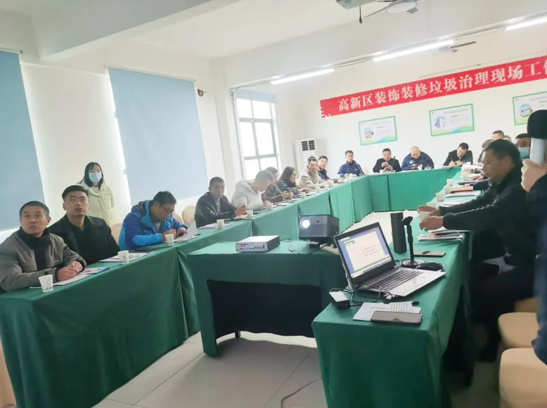 高新區(qū)綜合執(zhí)法局邀請(qǐng)兩鎮(zhèn)四辦負(fù)責(zé)人一行齊聚中正航環(huán)保,召開裝飾裝修垃圾治理現(xiàn)場(chǎng)工作會(huì)