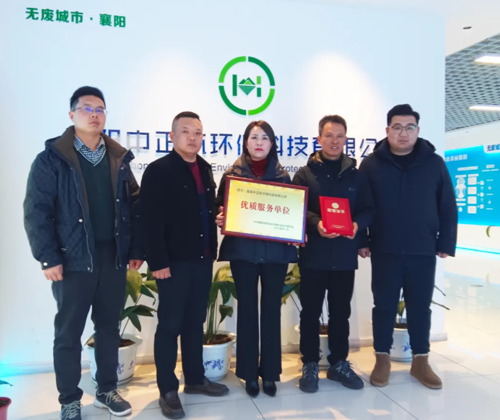 2025年1月9日,襄陽高新區(qū)米莊鎮(zhèn)葉店社區(qū)領(lǐng)導(dǎo)一行,親臨中正航環(huán)保公司,授予公司環(huán)保處置“優(yōu)質(zhì)服務(wù)單位”榮譽(yù)牌匾,同時(shí)授予“葉店社區(qū)公益基金”貢獻(xiàn)單位榮譽(yù)證書。此次授牌旨在肯定中正航環(huán)保公司在環(huán)保治理領(lǐng)域