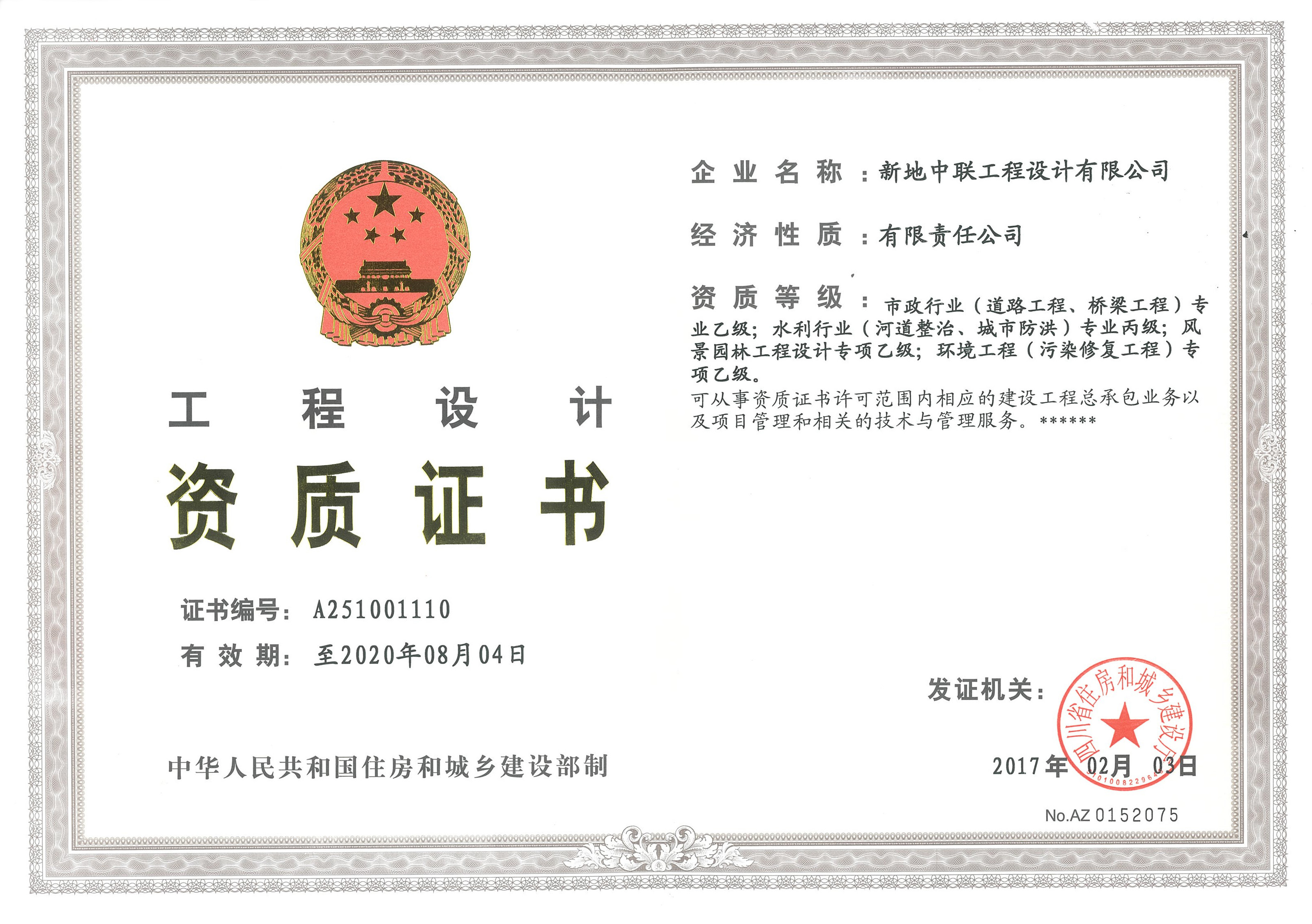 市政行業(yè)(道路工程、橋梁工程)專業(yè)乙級; 水利行業(yè)(河道整治、城市防洪)專業(yè)丙級; 風(fēng)景園林工程設(shè)計專項乙級; 環(huán)境工程(污染修復(fù)工程)專項乙級 |